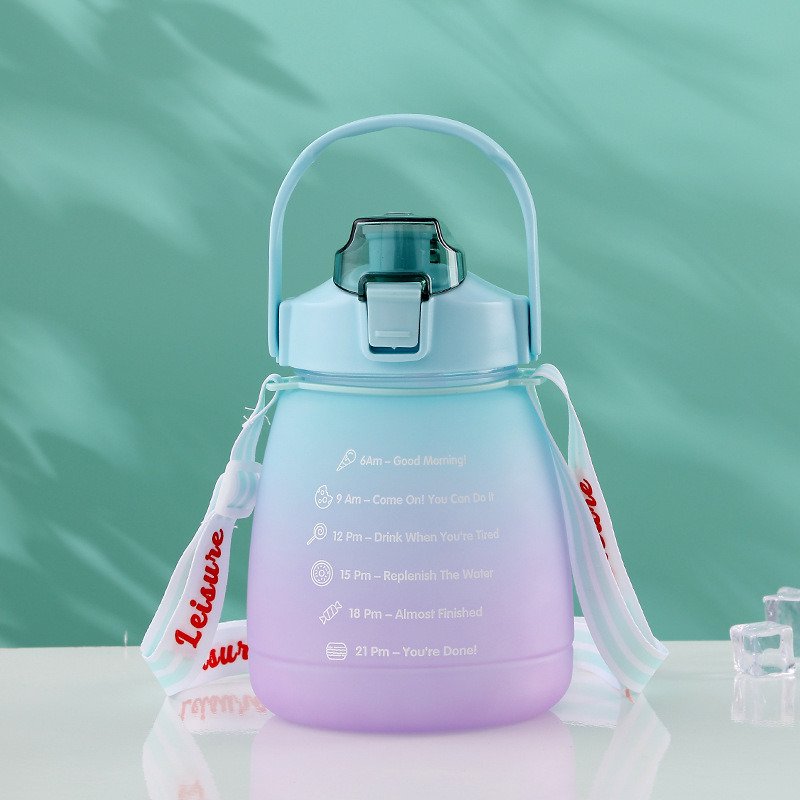 Home > 1300ml Motivational Water Bottle with Time Marker; Shoulder Strap & Straw - Perfect for School; Sports; Camping - 44oz Cute Design for Girls & Kids