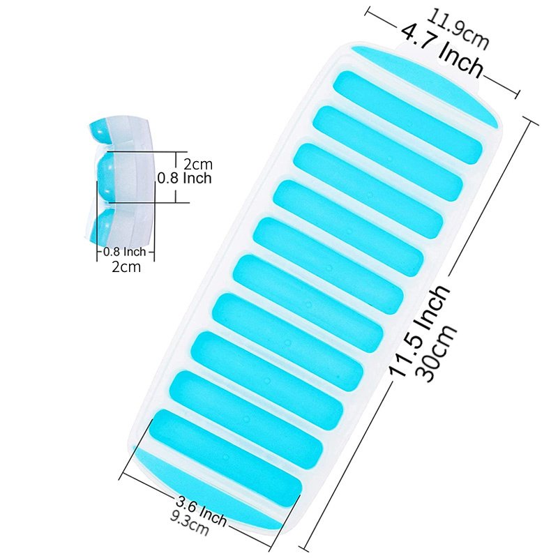 Name: Long 10 grid finger ice tray Material: PP plastic + silicone Color: blue; green; orange; yellow; purple Size: 11.6*29.9cm Can fit into the bottle mouth: Finally; there are popsicles that can fit into the water bottle and standard sports water bottle. About 3.7 inches (about 9.5 cm) long and about 0.7 inches (about 1.9 cm) in diameter; the popsicle slips easily into most water bottles for quick and easy hydration and worry-free cooling.