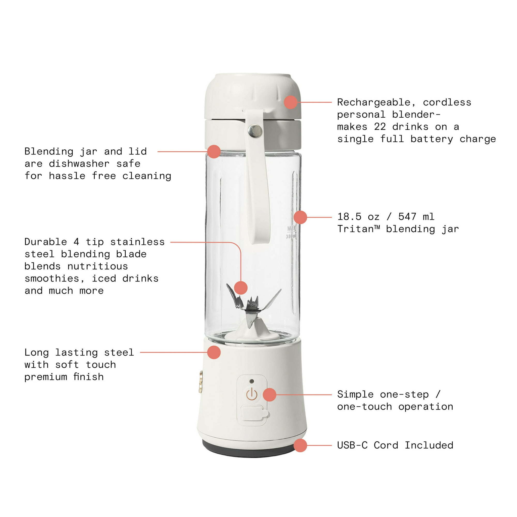 Beautiful Portable Blender White Icing by Drew Barrymore 70-Watt 18.5 oz