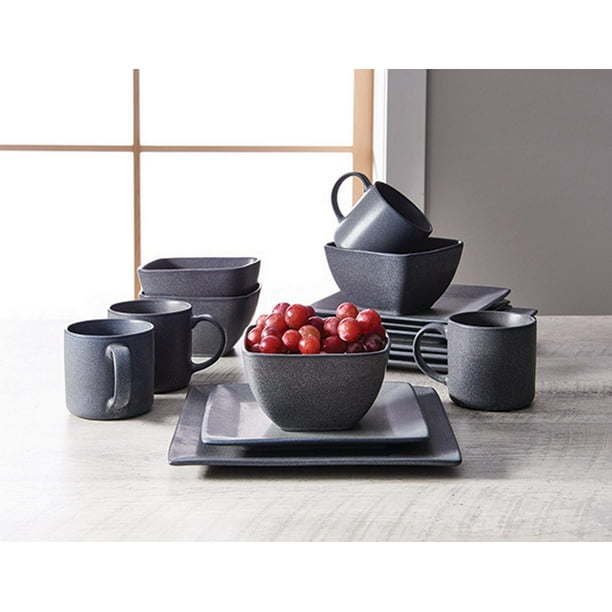 Better Homes & Gardens- Dark Gray Square Stoneware 16-Piece Dinnerware Set