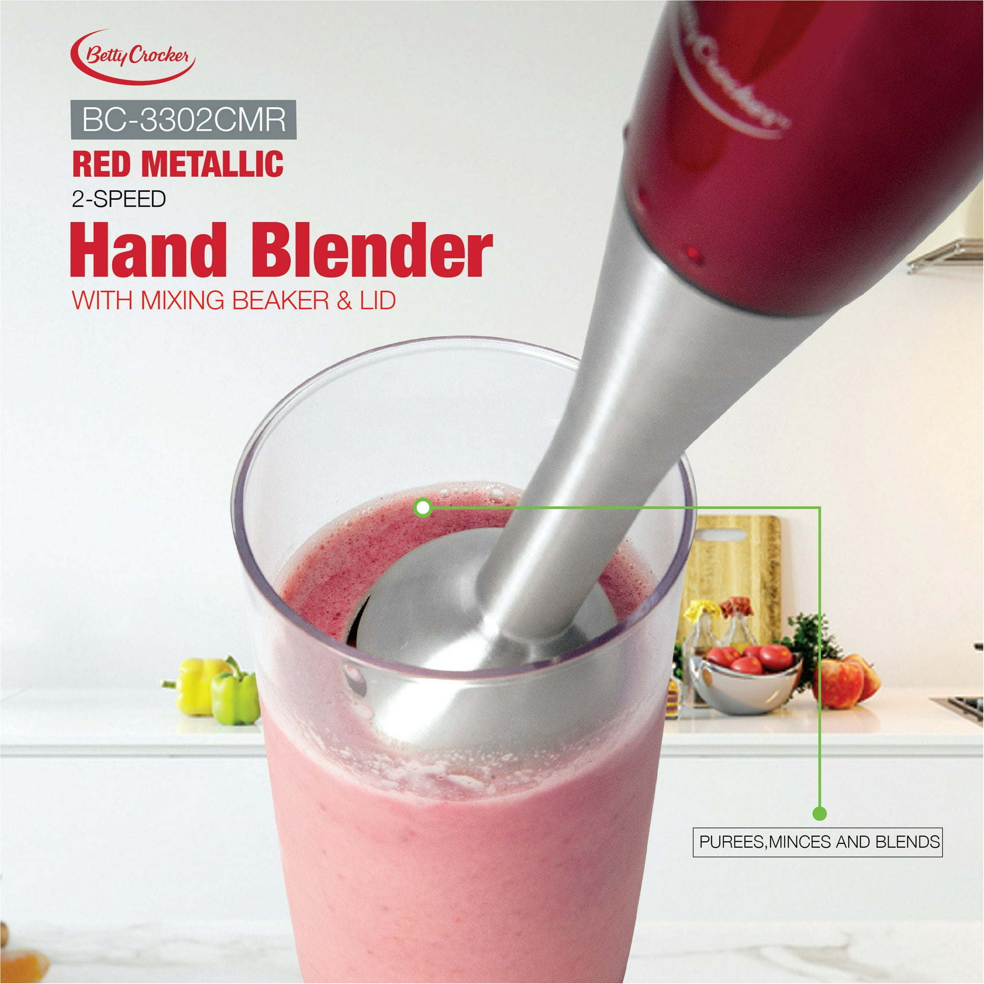 Betty Crocker BC-3302CMR Two Speed Hand Blender with Included Beaker Red