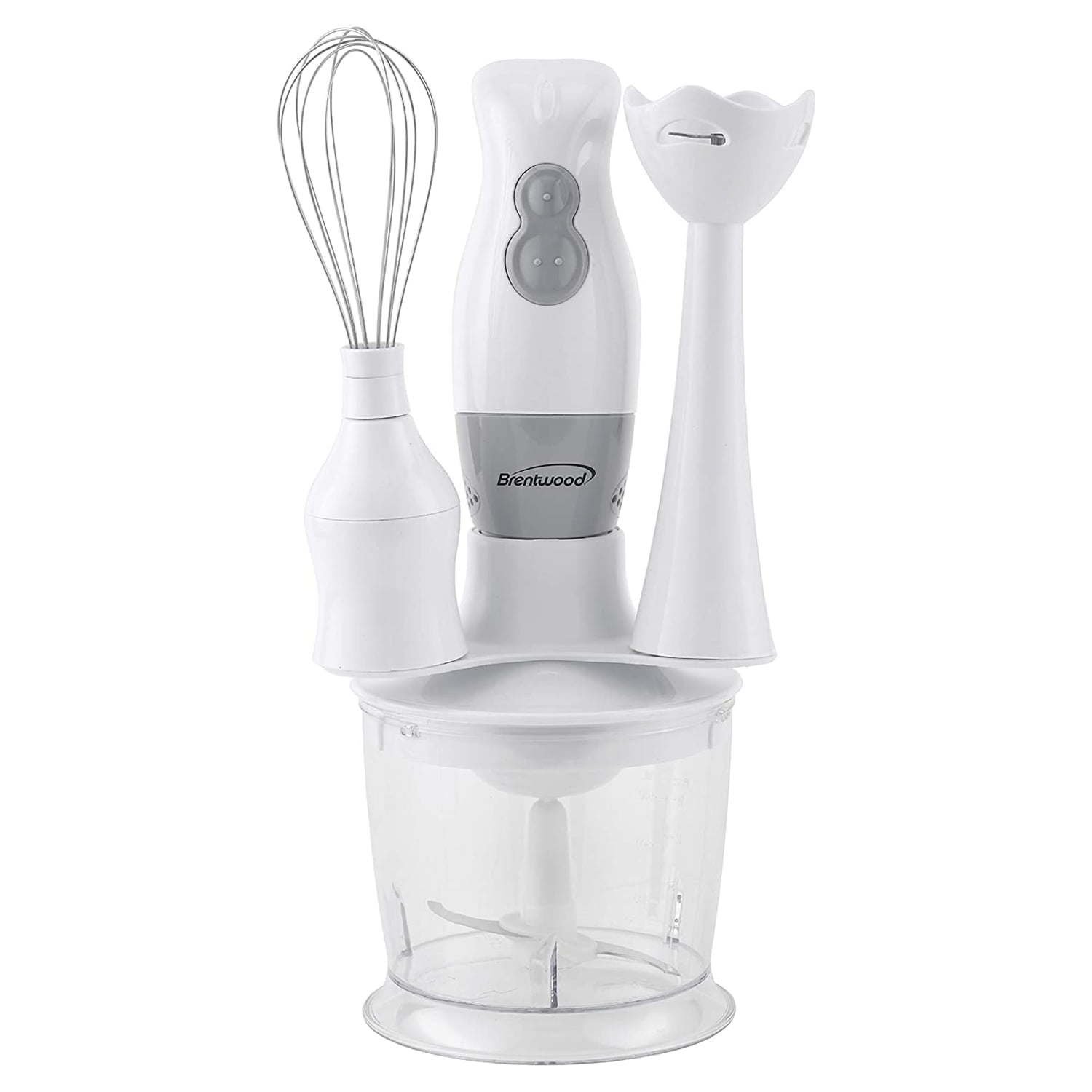 Brentwood Appliances 2-Speed Hand Blender and Food Processor with Balloon Whisk (White) (HB-38W)