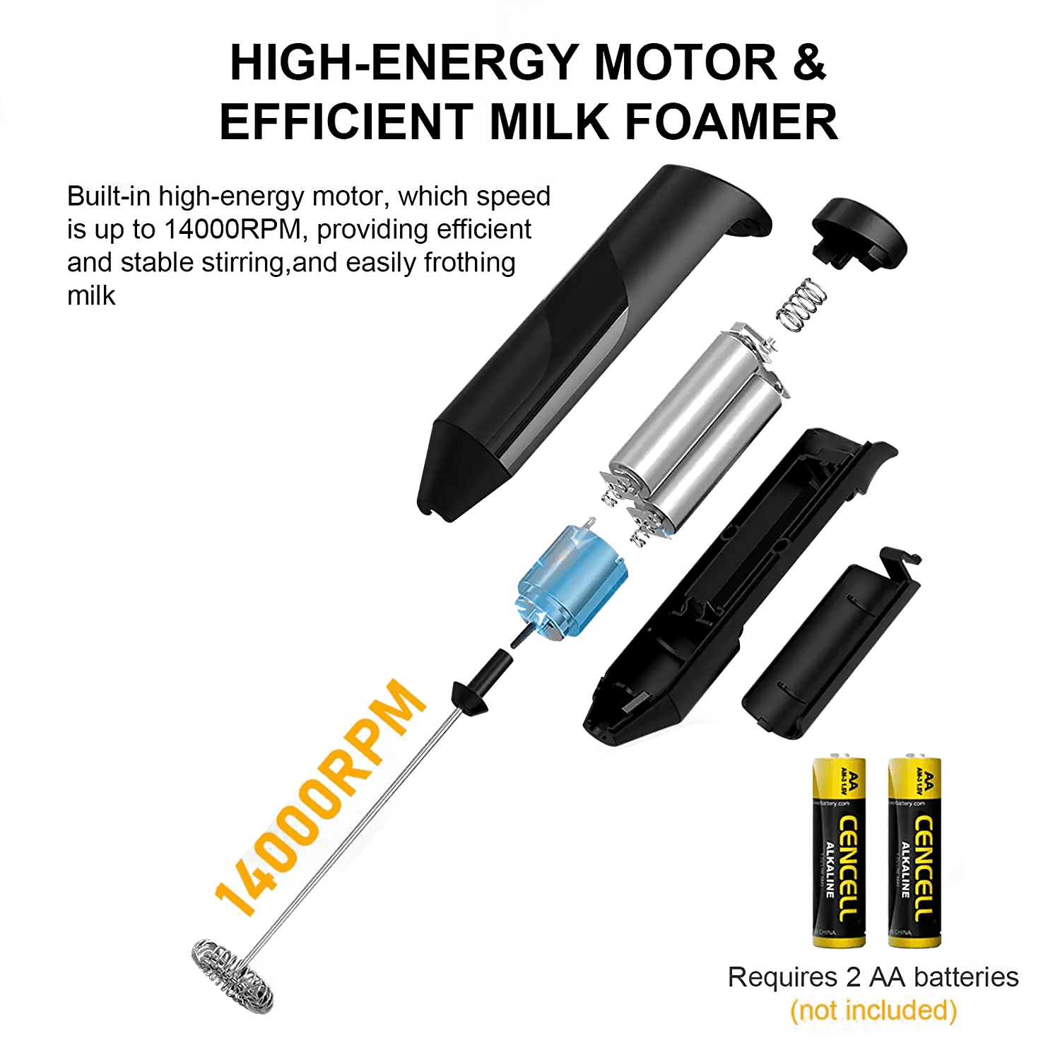 <br>Convenient Battery Operated - The frother is battery operated by 2 AA batteries (not included), just need to change the battery directly upon frother is out of power, so missing cords or finding sockets will not happen