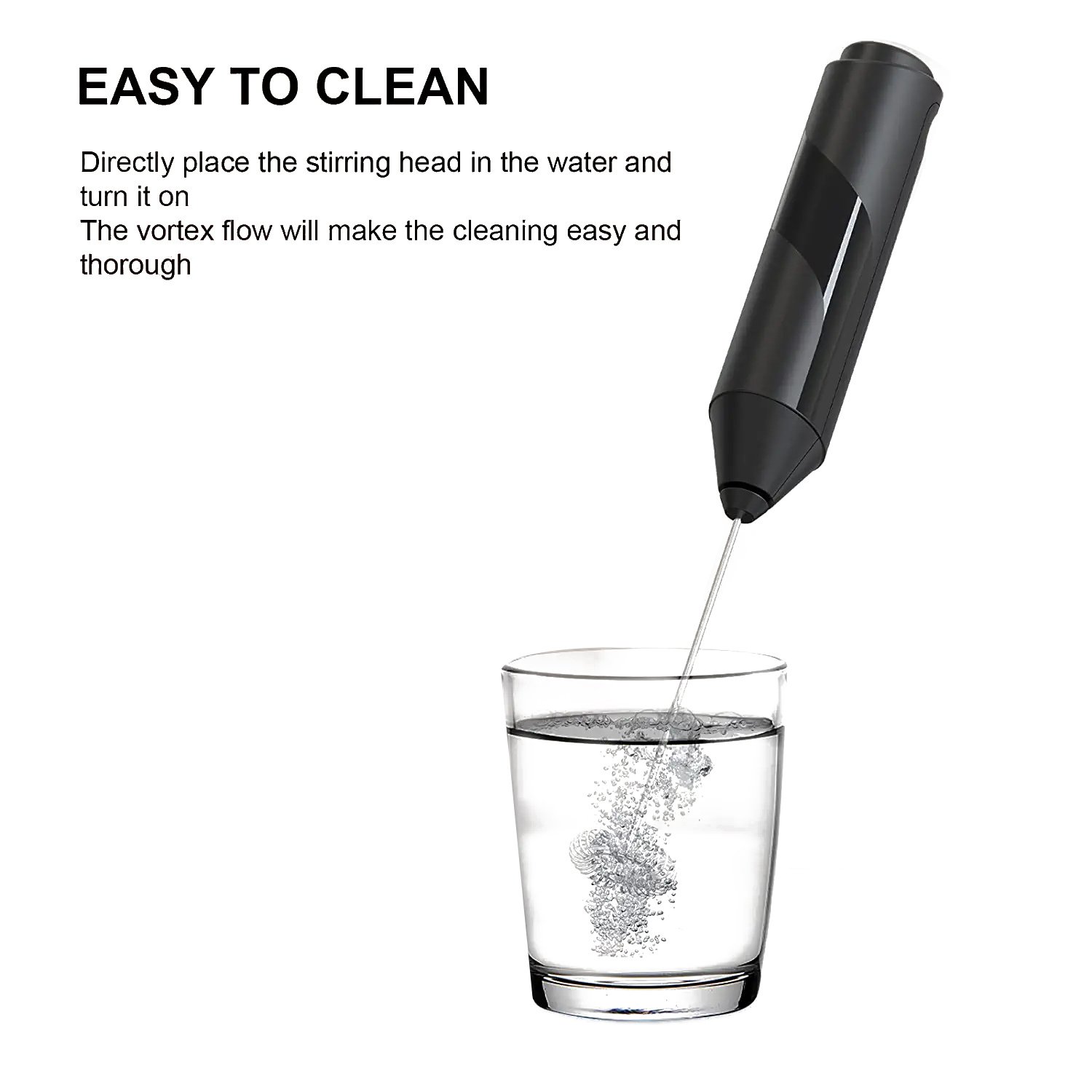 <br>Easy to Use and Clean - Simple one-touch button with a low noise level, just put it into a container with liquid food up to approx 1/3 to froth, and it will stop work upon you loose the button. If you want to clean it, just put the whisk in the water and press the button to spin it clean