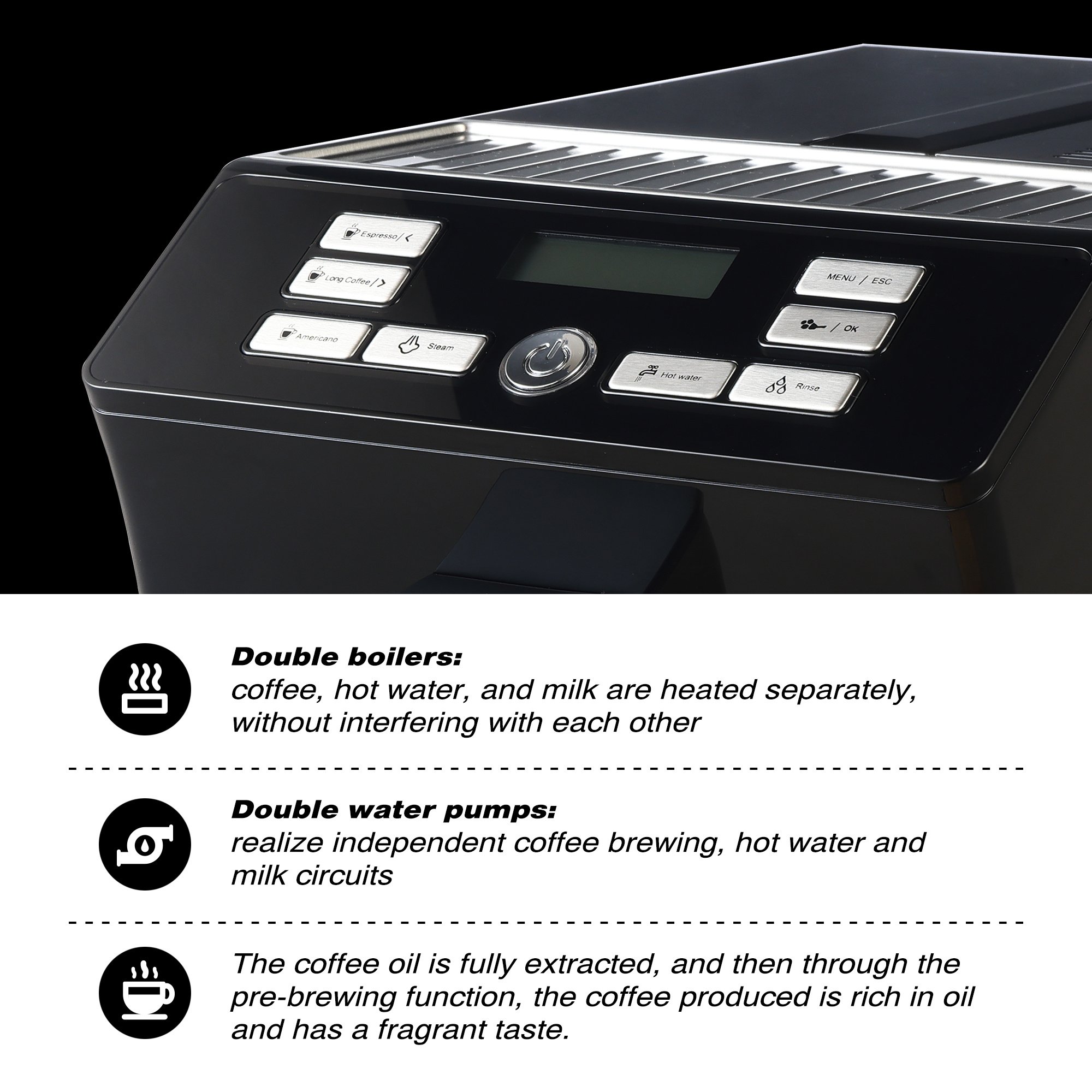 2.Dual Water Pumps & Boilers: Featuring independent coffee brewing, hot water, and milk circuits, our coffee machine ensures a smooth operation with no cross-interference. Separate heating ensures an ideal temperature for each component, leading to a perfect beverage every time.