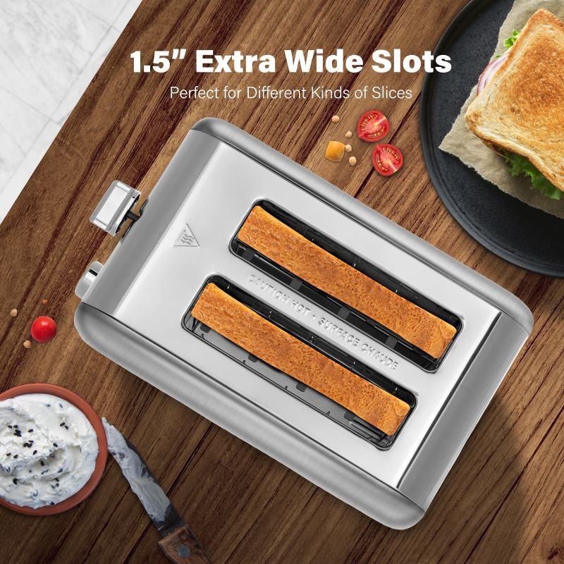 1.A 1.5" wide slot wider than many other 2 slice toasters, fit thicker bread and bagel.