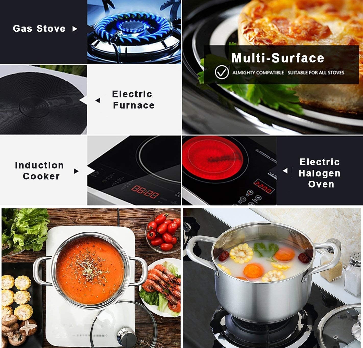 Made with 304 food grade stainless steel; which is perfect for corrosion resistance. The stainless steel cooking surface will not discolor; react with food or alter flavors. Great for classic cooking techniques like slow simmers; rolling boils and reduction of liquids.