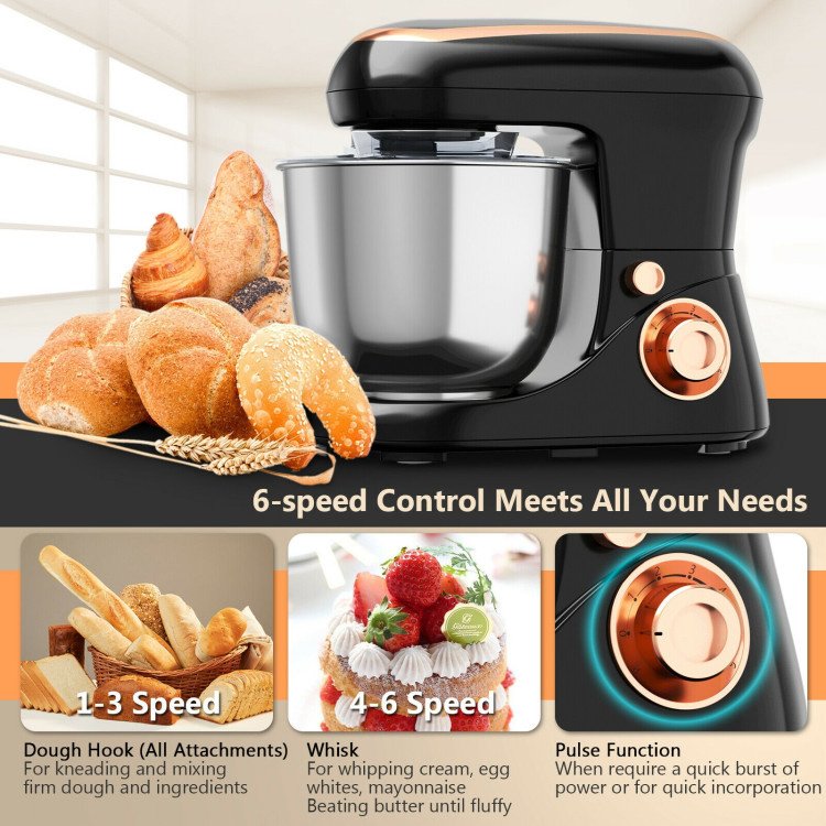 Featuring tit-head design; the stand mixer makes it easy to install mixing bowl and attachments by pressing the unlock lever. Thanks to that; it’s also of great convenience to add ingredients. Four non-slipping pads on the bottom add extra stability and safety; which servesto keep the mixer steady while mixing food.