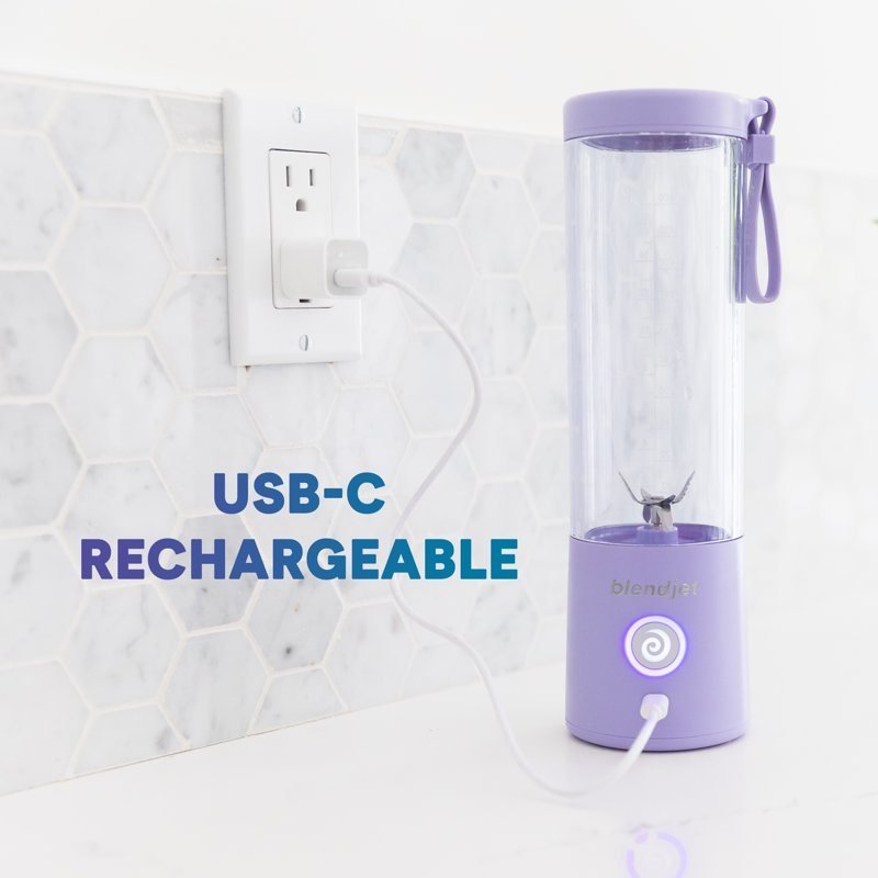 This triumph of technology is USB-C rechargeable, making it easy and convenient to blend smoothies, protein shakes, margaritas, frozen lattes and more, at home or on the go. is perfectly sized to fit in a cup holder or travel in your bag, and cleanup is a breeze: just blend water with a drop of soap, r, and you are ready for your next blended creation. Patented TurboJet technology powers through ice, frozen fruit, leafy greens and other tough ingredients.
